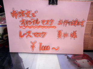 Indianの夏用オリジナルマスクは、レース素材やスポーツウェア素材を使用して作っています。